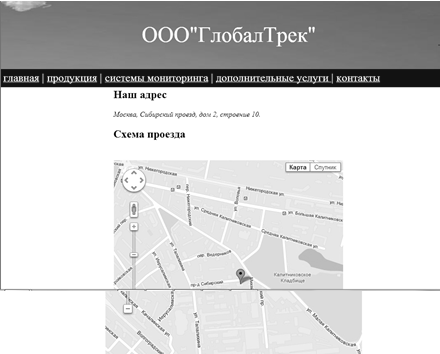 .6 Страница контакты: