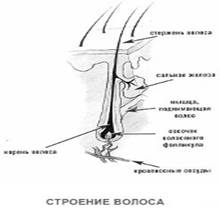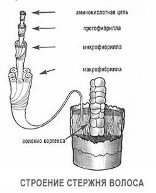 (это часть волоса, которая находится глубоко в коже) и стержня (его мы видим на