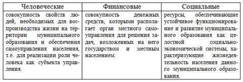 муниципальных ресурсов вне зависимости от их типа - человеческие, социальные