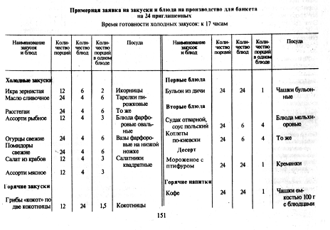 на производство для банкета на 24 приглашенных представлено в таблице 2.