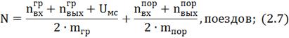 Количество поездов считается отдельно для каждого стыкового пункта и тоже сводится в таблицу 2.3.