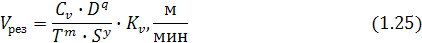 мм/об;, m, y - показатели степени, характеризующие параметры