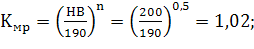 - коэффициент, учитывающий состояние поверхности заготовки, ![]()