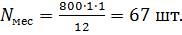 где, X - число запусков в месяц, X = 1.