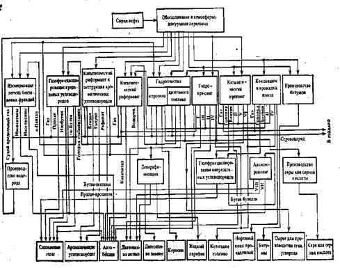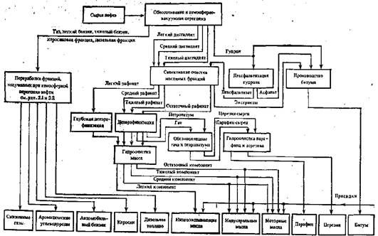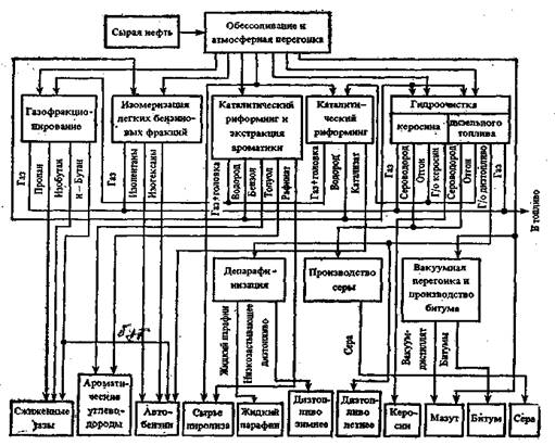 Ниже приводится краткая характеристика основных технологических процессов переработки нефти и нефтехимического синтеза и их места в схеме завода.