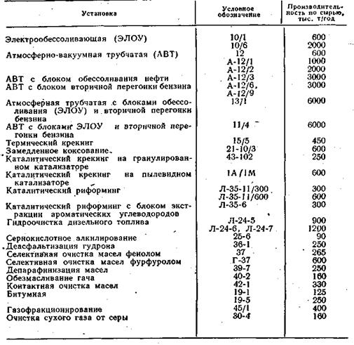 Таблица 3.1.1. Типовые установки по переработке нефти