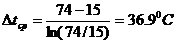 получим, согласно (6.3)[12 ], среднюю разность температур теплоносителей: