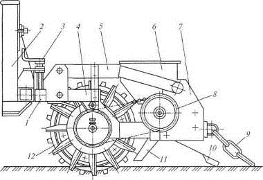 - загортач; 11 - семяпровод; 12 - бороздообразующий каток