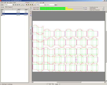 В каждом из этих методов предусмотрен учет направления волокна материала и возможно принудительное управление ориентацией отдельных элементов раскладки. Одновременно можно готовить раскладку на несколько разных размеров листа (например 1020х720 и 700х500 - под разные печатные и штанцевальные машины). Для каждого листа настраиваются необходимые границы запечатываемого поля и отступы по краям.