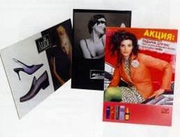 Шоу-кард - жесткая панель из толстого картона, на которой размещена информация о продукте, не имеет дополнительных кармашков (Рис. 2.1.8). По сути, это листовка или плакат, приклеенная на жёсткую панель, а для устойчивости снабженная сзади ножкой-опорой. Размер панели варьируется от минимального А4 до А1. Иногда шоу-карды представляют собой ростовые фигуры напольного размещения. Большие размеры достигаются за счет соединения двух и более панелей формата А1, которые могут быть жестко склеены между собой или собираться на месте [20,стр.38-39].