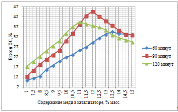 Полученные результаты, их новизна. Новизна полученных результатов заключается в подтверждении возможности синтеза катализаторов путем нанесения на подложку из оксида кремния меди, никеля, хрома, которые проявляют высокую активность в процессе гидрирования фурфурола в фурфуриловый спирт. Разработаны сплавные катализаторы с применением в качестве добавки ферромарганцевых сплавов, подобрано оптимальное соотношение данных компонентов, позволяющее получать высокие выходы целевого продукта. Проведены исследования по определению взаимосвязей выхода фурфурилового спирта и технологических параметров процесса.