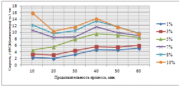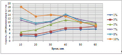 Методы исследования. Для исследования структуры синтезированных катализаторов применяли: микроскопический, электронномикроскопический анализы, для исследования удельной поверхности и пористости катализаторов применяли методом тепловой десорбции аргона, для определения состава продуктов, полученных на катализаторах применяли хромато графический анализ.