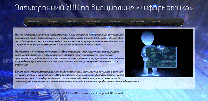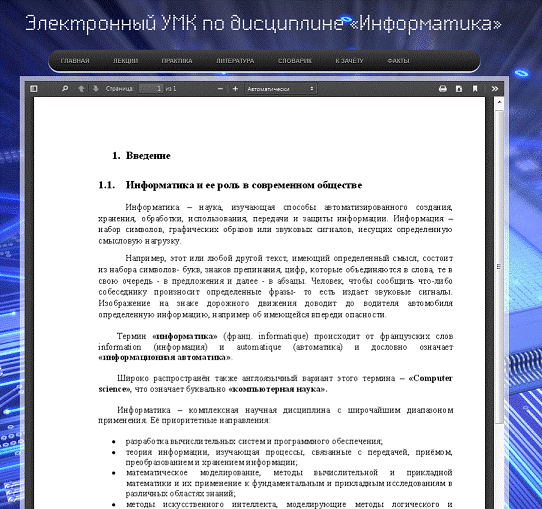 Целью данного дипломного проекта является разработка учебно-методического электронного комплекса (УМК) по дисциплине «Информатика».