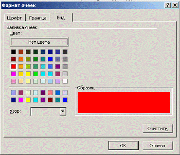 красный цвет (рис.3), нажмем ОК и получим окно "Условное