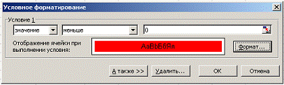 Рис. 3 Выбор цвета ячеек с отрицательным значением