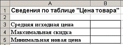 Установим в ячейках В3: В5 формат "Денежный". Выделим ячейку В3, впишем в нее формулу <=СРЗНАЧ (Зад_2! C7: C16) > и в этой ячейке появится значение 327, что является средней исходной ценой. Выделим ячейку В4, впишем в нее формулу <=МАКС (Зад_2! E7: E16) > и в этой ячейке появится значение 70, что является максимальной скидкой. Выделим ячейку В5, впишем в нее формулу <=МИН (Зад_2! F7: F16) > и в этой ячейке появится значение 90, что является минимальной новой ценой.