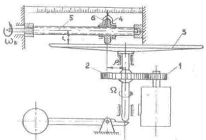 Если скорость винта 5 и ролика 4 неодинаковы, ролик будет перемещаться вдоль винта. Направление перемещения таково, что скорость ролика будет приближаться к скорости винта. При установившейся скорости винта ролик займет такое положение, при котором его скорость будет равна скорости винта. При этом получается: