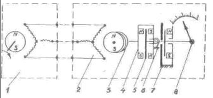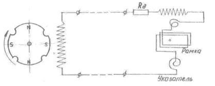синхронной передачи и указателя, аналогичного магнитоиндукционному тахометру.