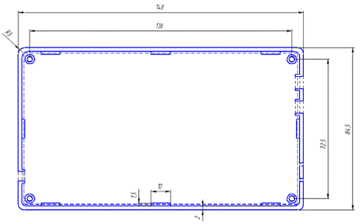 Так же для удобства перемещения устройства сделано скругление углов при переходе от стенок корпуса к его дну. Радиус скругления - 3 мм.