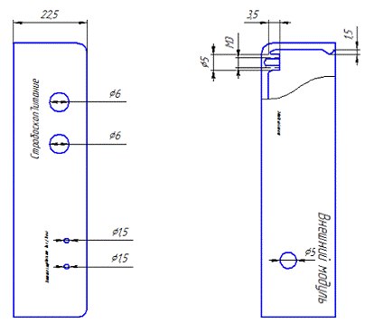 С левой и правой сторон корпуса выполняются отверстия для разъемов X1, X2 и X3, а так же отверстия для переключателей SB1 и SB2. Переключатели вынесены из корпуса для экономии места в корпусе, так как устройство будет размещаться на лабораторном стенде, эти переключатели могут включаться со стенда. Помимо этого, эти переключатели реализуют включение устройства и включение стробоскопа, которые производятся преподавателем или лаборантом.