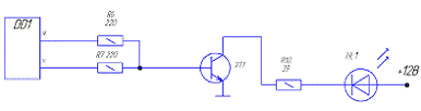 В качестве ключа для управления HL1 выберем n-p-n транзистор КТ630Е