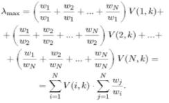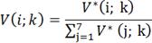 V*(i, k) = (wi/w1*wi/w2*wi/w3*…*wi/w6) 1/6, i -