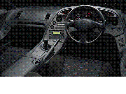 Салон разделен на две половины центральным туннелем, который впереди плавно переходил в развернутую к водителю центральную консоль, сопряженную, в свою очередь, с широкой приборной панелью. На ней центральное место отдано тахометру, а спидометр и прочие приборы расположены по бокам.