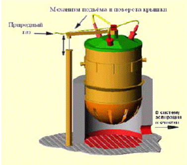 В установке подогрева шихты, разработанной Институтом газа АН УССР (см. рис.1), осуществляется нагрев шихты до 3000С. Нагрев производится в грейферной бадье (см. рис.2) газовой горелкой. При нагреве корпус нагревается до такой же температуры, что и шихта. Производить нагрев выше указанной температуры невозможно, что обусловлено перегревом корпуса загрузочной бадьи. Это требование обусловлено необходимостью обеспечения надёжности несущей способности подвесных элементов при транспортировании бадьи с нагретой шихтой от установки подогрева до места выгрузки шихты в печь.