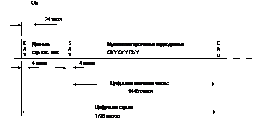видеоданные цифровой активной строки, образующие блок из 1440 кодовых слов