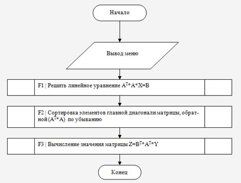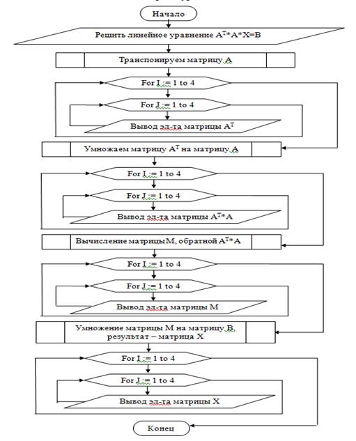 цикл: определение значения матрицы Х=((A^T*A)^(-1))*B. Перед началом