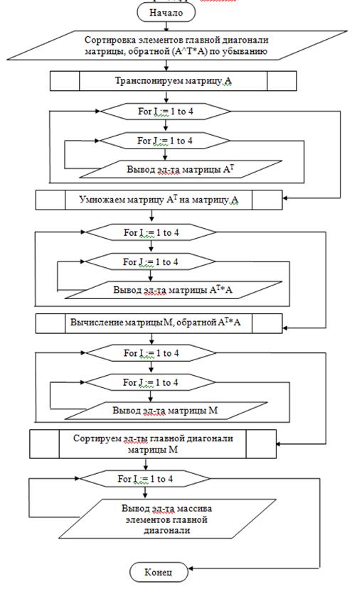 Trans44(A, M);i := 1 to 4 doj := 1 to 4 do(M[i, j]:10:2);(' ');;;;('Вычислим матрицу A^T*A:');(M, A, M);i := 1 to 4 doj := 1 to 4 do(M[i, j]:10:2);(' ');;;;('Вычислим матрицу обратную (A^T*A):');(M, M);i := 1 to 4 doj := 1 to 4 do(M[i, j]:10:2);(' ');;;;i := 1 to 4 do[i] := M[i, i];:= false;i := 1 to 3 doP[i] < P[i + 1] then:= P[i + 1];[i + 1] := P[i];[i] := max;:= true;;;not isExit;('Отсортированная главная диагональ матрицы M, обратной (A^T*A)');