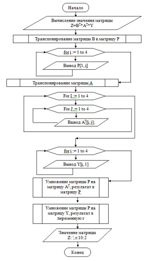 repeatKeyPressed;;zadacha3;M : Matrix44;: Matrix14;, j, nom : integer;: real;;('Вычисление значения матрицы Z=(B^T)*(A^T)*Y');('Вычислим матрицу B^T:');