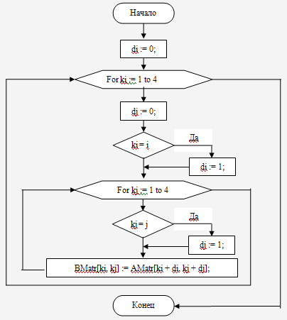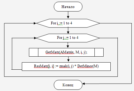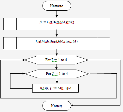 Рис.8. Блок схема процедуры GetMatrDop(AMatr : Matrix44; var ResMatr : Matrix44);