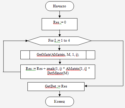 Рис. 7. Блок схема функции GetDet(AMatrix : Matrix44) : Real