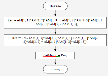 Блок схема функции DetMinor(AM : Matrix33) : real;