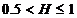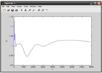 координат, где по оси абсцисс отложено время t, а по оси ординат значения экспоненты Херста H. Не учитывая начальные всплески
