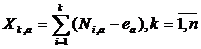 Находим элементы временного ряда накопленных отклонений (Xk,a) от
