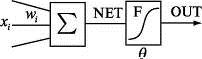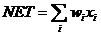 где хi - входные сигналы, совокупность всех входных сигналов нейрона образует вектор x;i - весовые коэффициенты, совокупность весовых коэффициентов образует вектор весов w;- взвешенная сумма входных сигналов, значение NET передается на нелинейный элемент;