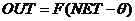Нейрон имеет несколько входных сигналов x и один выходной сигнал OUT. Параметрами нейрона, определяющими его работу, являются: вектор весов w, пороговый уровень Ө и вид функции активации F.
