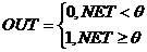 Используется в классическом формальном нейроне. Развита полная теория, позволяющая синтезировать произвольные логические схемы на основе ФН с такой нелинейностью. Функция вычисляется двумя-тремя машинными инструкциями, поэтому нейроны с такой нелинейностью требуют малых вычислительных затрат. Эта функция чрезмерно упрощена и не позволяет моделировать схемы с непрерывными сигналами. Отсутствие первой производной затрудняет применение градиентных методов для обучения таких нейронов. Сети на классических ФН чаще всего формируются, синтезируются, т.е. их параметры рассчитываются по формулам, в противоположность обучению, когда параметры подстраиваются итеративно.