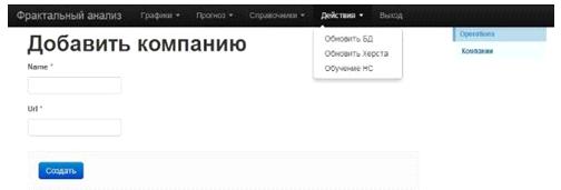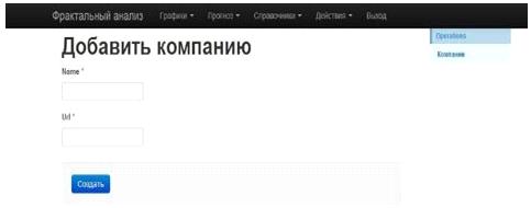 Данное приложение автоматизирует работу по прогнозированию временных рядов с применением фрактального анализа. Веб-интерфейс приложения позволяет пользователю добавлять исторические данные различных временных рядов и делать прогноз с помощью нейронной сети, использующей на этапе формирования входных данных фрактальный анализ.
