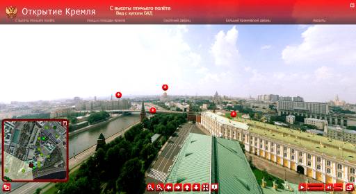 На интернет сайте Московского кремля имеется такая функция, как виртуальный тур. Используя компьютерную мышь, и специальные кнопки, расположенные внизу экрана, можно управлять смотровыми точками, и перемещаться на 360 градусов. В этом музее можно посмотреть все главные здания и сооружения, расположенные в Кремле. Обзор каждой смотровой точки может сопровождается аудио-экскурсией, содержащей информацию о истории того или иного объекта.