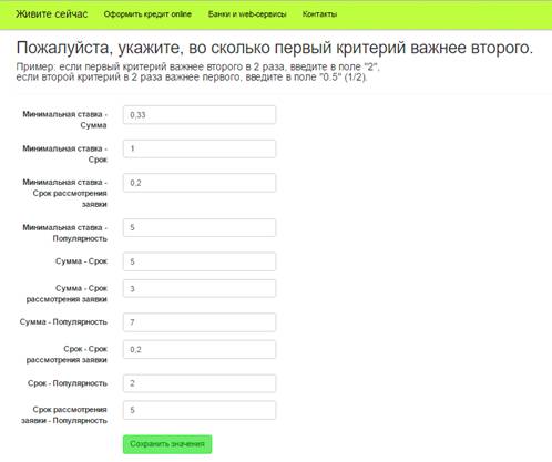 выгодный для него кредит. Пример матрицы предпочтений приведен на Рисунке 7.