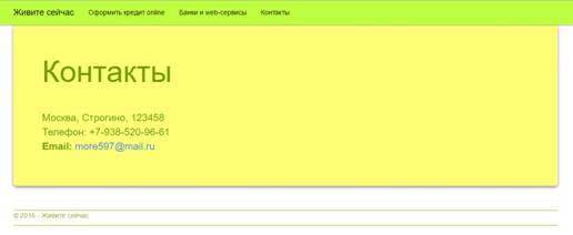 "Контакты". Пример этой страницы можно увидеть на Рисунке 9.