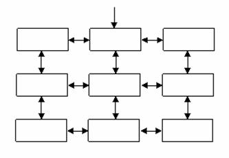 Самая простая из рассматриваемых топологий. Страницы идут одна за другой, как в слайд шоу. В линейной структуре нет разделения содержимого на уровни.