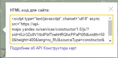 Интерактивная карта вставляется на страницу сайта с помощью элемента <script>. С помощью атрибута src задаются параметры: идентификатор карты, ширина и высота в пикселях.