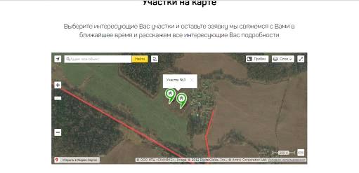 Для реализации блока с расположением земельных участков на карте воспользуемся API яндекс карт.