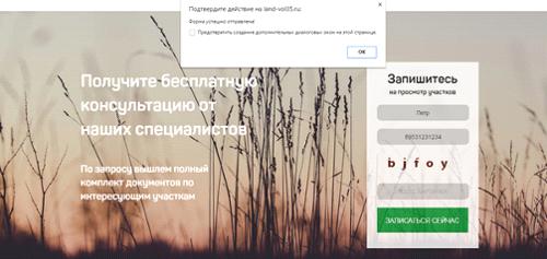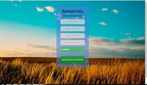 Пользователи сайта смогут ознакомиться с рекламным предложением по продаже земельных участков, оставить свои контактные данные.