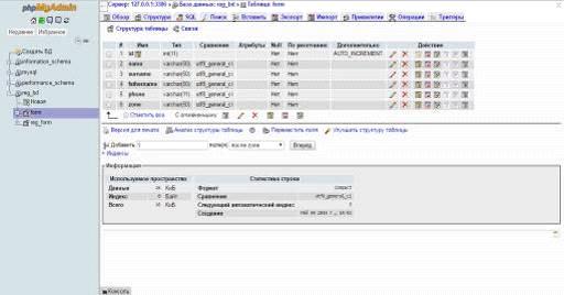 Рисунок 22 - Реализация базы данных, средствами PHPMyAdmin.