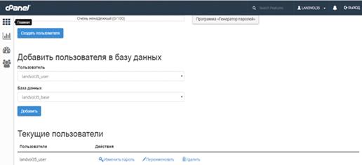 Рисунок 26 - Создание пользователя базы данных в c-panel.